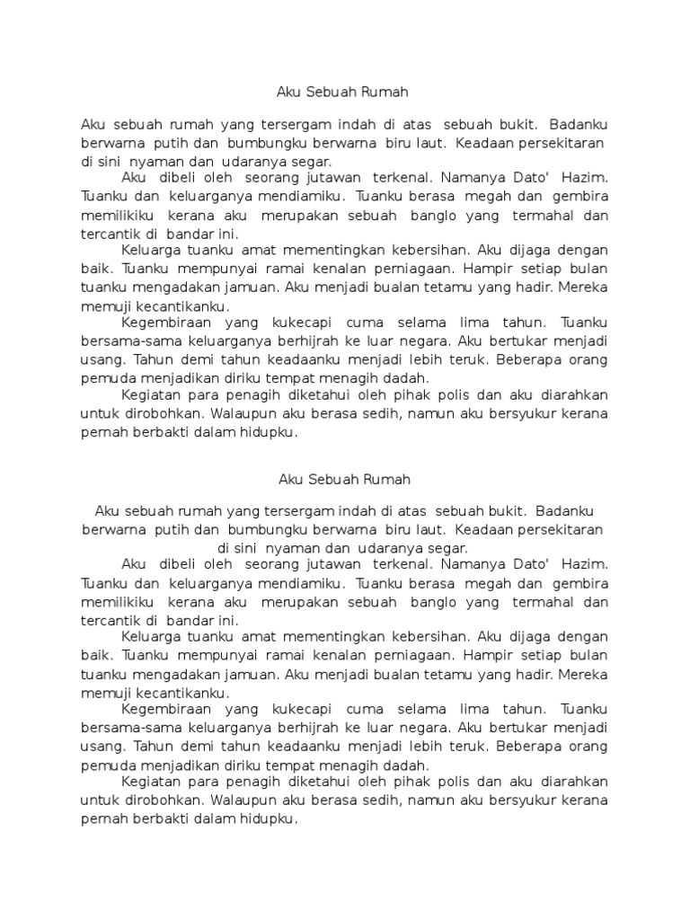 Adapun persiapan awal yang mesti dilakukan dalam membuat resume untuk urusan profesional antara lain. Interested in flipbooks about Contoh Karangan. Aku sebuah rumah banglo yang tersergam indah di atas sebuah bukit.